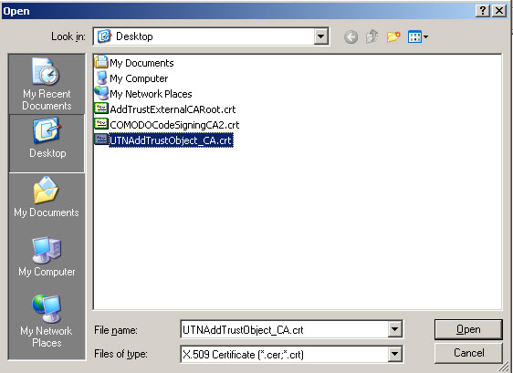 18) Click Browse, Select UTNAddTrustObject_CA.crt from Step #1