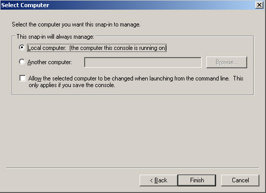 6) Select 'Local computer (the computer this console is running on)'. Click Finish.